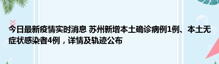 今日最新疫情实时消息 苏州新增本土确诊病例1例、本土无症状感染者4例,详情及轨迹公布