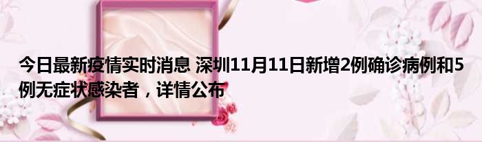 据深圳卫健委,11月11日0-24时,深圳新增2例新冠肺炎确诊病例和5例新冠病毒无症状感染者,均为外省来(返)深人员