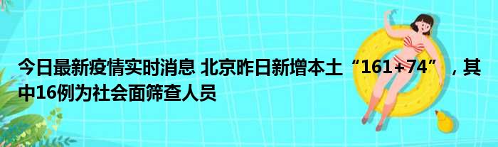 今日最新疫情实时消息 北京昨日新增本土“161+74”,其中16例为社会面筛查人员