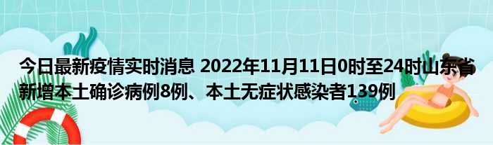 您的位置:首页 >动态频道 > 聚焦疫情 > 今日最新疫情实时消息 2022年11月11日0时至24时山东省新增本土确诊病例8例、本土无症状感染者139例 2022-11-26 16:38:15 • 来源: 导读 免责声明:本文由用户上传,如有侵权请联系删除! 上一篇:今日最新疫情实时消息 新疆11月11日新增确诊病例25例、无症状感染者693例 下一篇:今日最新疫情实时消息 深圳11月11日新增2例确诊病例和5例无症状感染者,详情公布