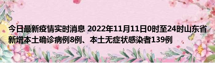 您的位置:首页 >动态频道 > 聚焦疫情 > 今日最新疫情实时消息 2022年11月11日0时至24时山东省新增本土确诊病例8例、本土无症状感染者139例 2022-11-26 16:58:17 • 来源: 导读 免责声明:本文由用户上传,如有侵权请联系删除! 上一篇:今日最新疫情实时消息 黑龙江11月12日新增本土确诊病例7例、本土无症状感染者412例 下一篇:今日最新疫情实时消息 河北11月12日新增确诊病例4例、无症状感染者585例