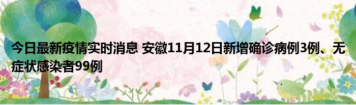 今日最新疫情实时消息 安徽11月12日新增确诊病例3例、无症状感染者99例