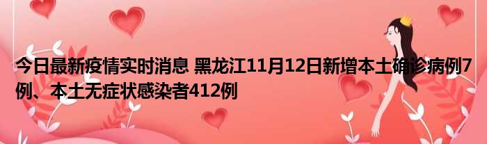 今日最新疫情实时消息 黑龙江11月12日新增本土确诊病例7例、本土无症状感染者412例