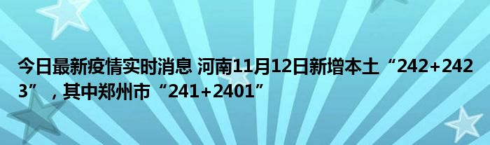 今日最新疫情实时消息 河南11月12日新增本土“242+2423”,其中郑州市“241+2401”