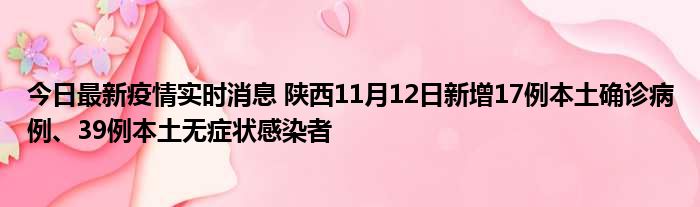 今日最新疫情实时消息 陕西11月12日新增17例本土确诊病例、39例本土无症状感染者