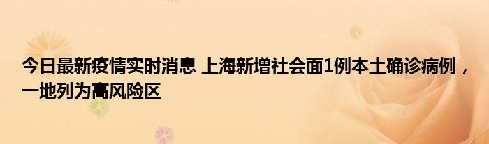 今日最新疫情实时消息 上海新增社会面1例本土确诊病例,一地列为高风险区