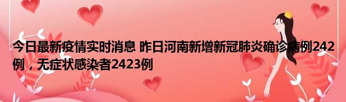 您的位置:首页 >动态频道 > 聚焦疫情 > 今日最新疫情实时消息 昨日河南新增新冠肺炎确诊病例242例,无症状感染者2423例 2022-11-27 21:42:17 • 来源: 导读 免责声明:本文由用户上传,如有侵权请联系删除! 上一篇:今日最新疫情实时消息 新疆乌鲁木齐市新增本土确诊病例20例、本土无症状感染者611例 下一篇:今日最新疫情实时消息 江苏11月12日新增本土确诊病例7例、本土无症状感染者33例