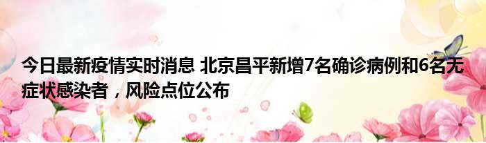 今日最新疫情实时消息 北京昌平新增7名确诊病例和6名无症状感染者,风险点位公布