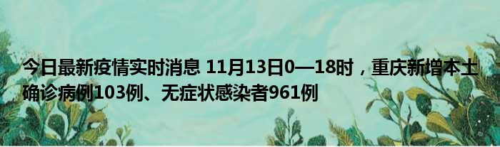 今日最新疫情实时消息 11月13日0—18时,重庆新增本土确诊病例103例、无症状感染者961例