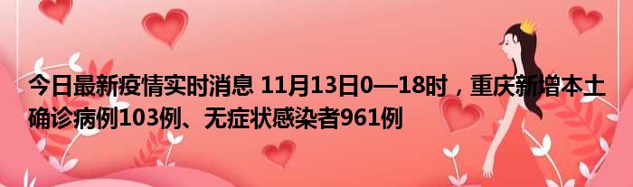 今日最新疫情实时消息 11月13日0—18时,重庆新增本土确诊病例103例、无症状感染者961例