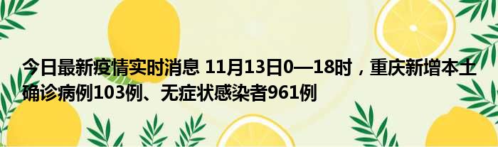 今日最新疫情实时消息 11月13日0—18时,重庆新增本土确诊病例103例、无症状感染者961例