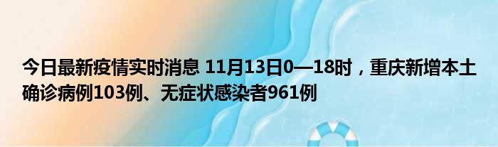 今日最新疫情实时消息 11月13日0—18时,重庆新增本土确诊病例103例、无症状感染者961例