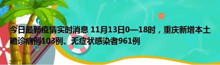 今日最新疫情实时消息 11月13日0—18时,重庆新增本土确诊病例103例、无症状感染者961例