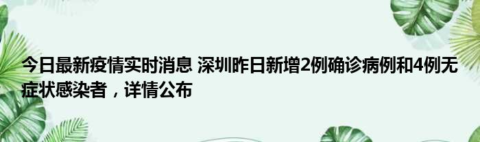 今日最新疫情实时消息 深圳昨日新增2例确诊病例和4例无症状感染者,详情公布