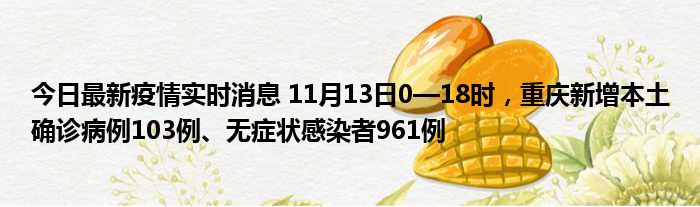 今日最新疫情实时消息 11月13日0—18时,重庆新增本土确诊病例103例、无症状感染者961例