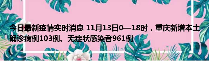 今日最新疫情实时消息 11月13日0—18时,重庆新增本土确诊病例103例、无症状感染者961例