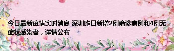 今日最新疫情实时消息 深圳昨日新增2例确诊病例和4例无症状感染者,详情公布