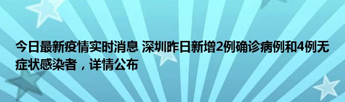 今日最新疫情实时消息 深圳昨日新增2例确诊病例和4例无症状感染者,详情公布