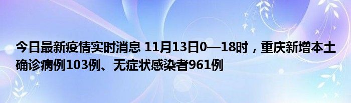 今日最新疫情实时消息 11月13日0—18时,重庆新增本土确诊病例103例、无症状感染者961例