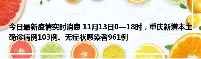 今日最新疫情实时消息 11月13日0—18时,重庆新增本土确诊病例103例、无症状感染者961例