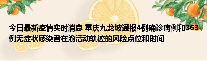 今日最新疫情实时消息 重庆九龙坡通报4例确诊病例和363例无症状感染者在渝活动轨迹的风险点位和时间