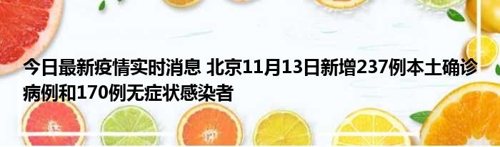 今日最新疫情实时消息 北京11月13日新增237例本土确诊病例和170例无症状感染者
