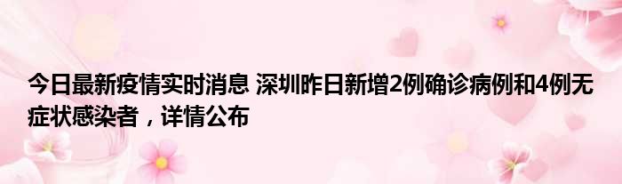 今日最新疫情实时消息 深圳昨日新增2例确诊病例和4例无症状感染者,详情公布