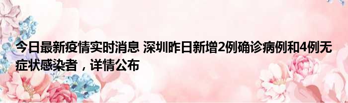 今日最新疫情实时消息 深圳昨日新增2例确诊病例和4例无症状感染者,详情公布