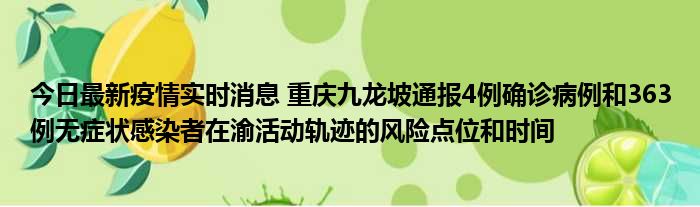 今日最新疫情实时消息 重庆九龙坡通报4例确诊病例和363例无症状感染者在渝活动轨迹的风险点位和时间