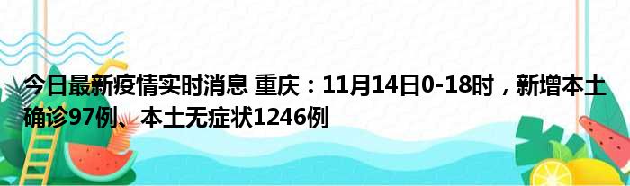 今日最新疫情实时消息 重庆:11月14日0-18时,新增本土确诊97例、本土无症状1246例