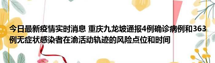 今日最新疫情实时消息 重庆九龙坡通报4例确诊病例和363例无症状感染者在渝活动轨迹的风险点位和时间