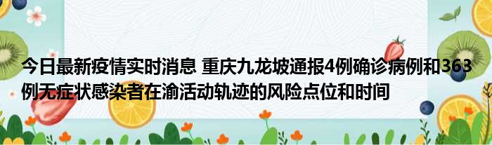 今日最新疫情实时消息 重庆九龙坡通报4例确诊病例和363例无症状感染者在渝活动轨迹的风险点位和时间
