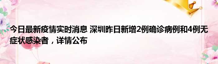 今日最新疫情实时消息 深圳昨日新增2例确诊病例和4例无症状感染者,详情公布