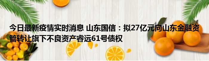 今日最新疫情实时消息 山东国信:拟27亿元向山东金融资管转让旗下不良资产睿远61号债权