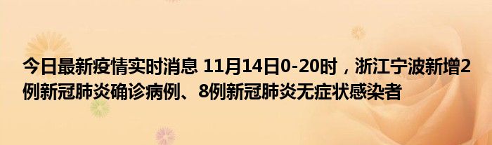 今日最新疫情实时消息 11月14日0-20时,浙江宁波新增2例新冠肺炎确诊病例、8例新冠肺炎无症状感染者