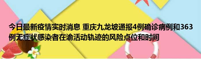今日最新疫情实时消息 重庆九龙坡通报4例确诊病例和363例无症状感染者在渝活动轨迹的风险点位和时间