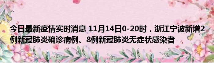 今日最新疫情实时消息 11月14日0-20时,浙江宁波新增2例新冠肺炎确诊病例、8例新冠肺炎无症状感染者
