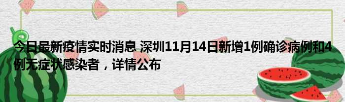 深圳卫健委通报,11月14日0-24时,深圳新增1例新冠肺炎确诊病例和4例新冠病毒无症状感染者