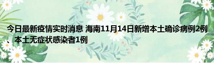 据央视新闻,海南省卫健委消息,2022年11月14日0时—24时,海南省新增本土确诊病例2例(海口市1例、定安县无症状转确诊1例);新增本土无