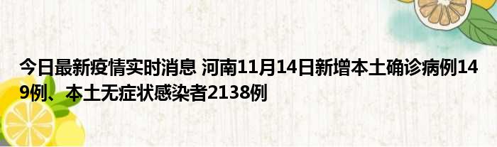 今日最新疫情实时消息 河南11月14日新增本土确诊病例149例、本土无症状感染者2138例