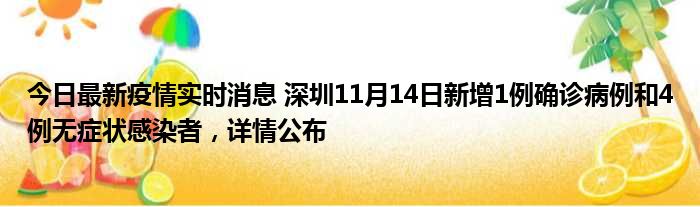 深圳卫健委通报,11月14日0-24时,深圳新增1例新冠肺炎确诊病例和4例新冠病毒无症状感染者