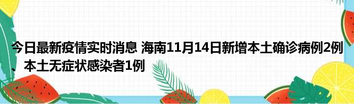 据央视新闻,海南省卫健委消息,2022年11月14日0时—24时,海南省新增本土确诊病例2例(海口市1例、定安县无症状转确诊1例);新增本土无