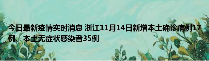 今日最新疫情实时消息 浙江11月14日新增本土确诊病例17例、本土无症状感染者35例