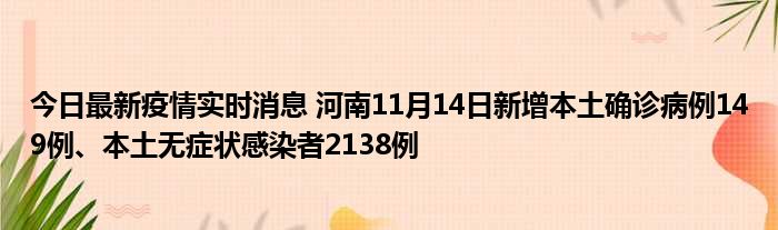 今日最新疫情实时消息 河南11月14日新增本土确诊病例149例、本土无症状感染者2138例