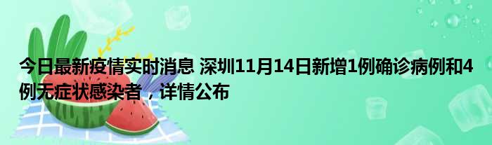 深圳卫健委通报,11月14日0-24时,深圳新增1例新冠肺炎确诊病例和4例新冠病毒无症状感染者