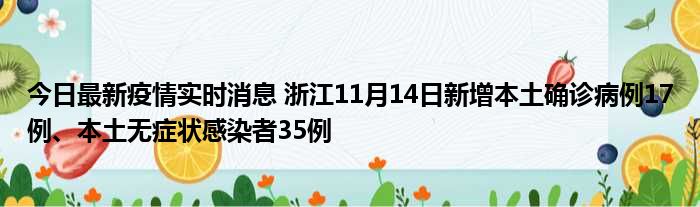 今日最新疫情实时消息 浙江11月14日新增本土确诊病例17例、本土无症状感染者35例
