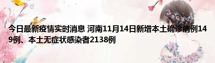 今日最新疫情实时消息 河南11月14日新增本土确诊病例149例、本土无症状感染者2138例