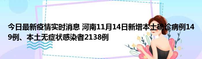今日最新疫情实时消息 河南11月14日新增本土确诊病例149例、本土无症状感染者2138例
