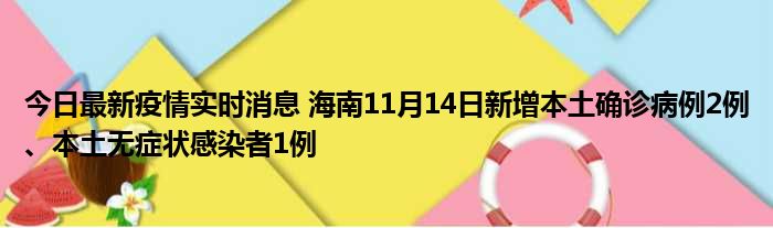 今日最新疫情实时消息 海南11月14日新增本土确诊病例2例、本土无症状感染者1例