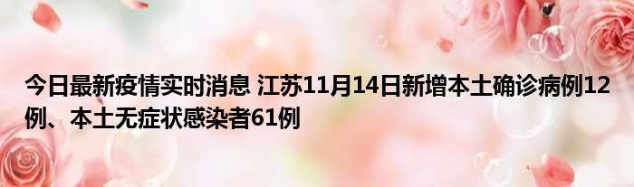 今日最新疫情实时消息 江苏11月14日新增本土确诊病例12例、本土无症状感染者61例